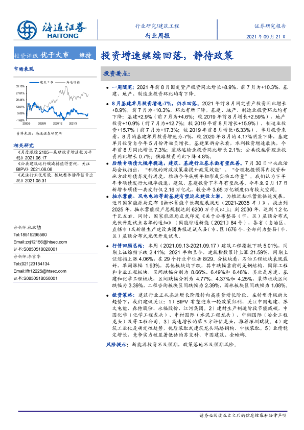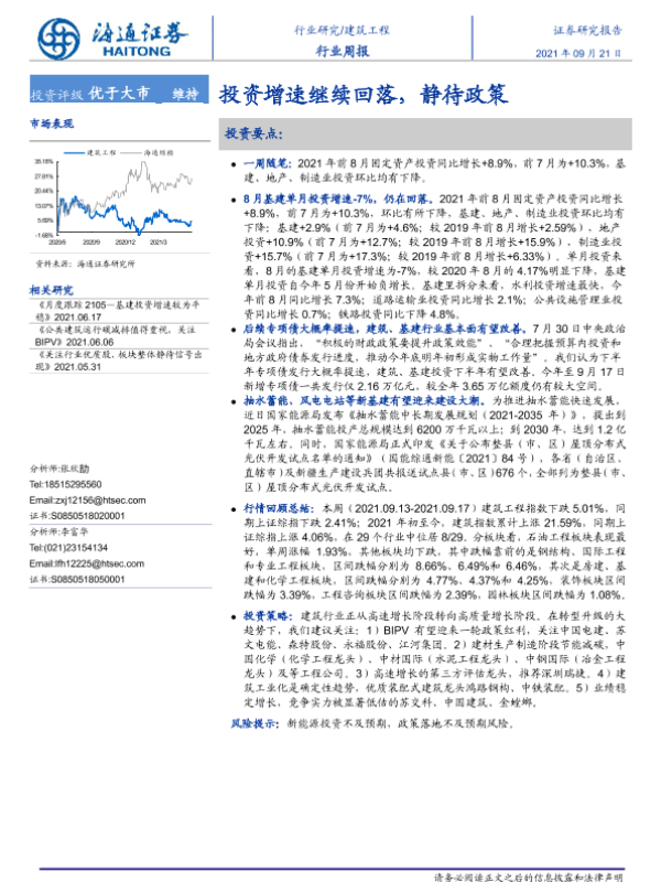 【海通证券】【20210921】建筑工程行业:投资增速继续回落,静待政策-6页
