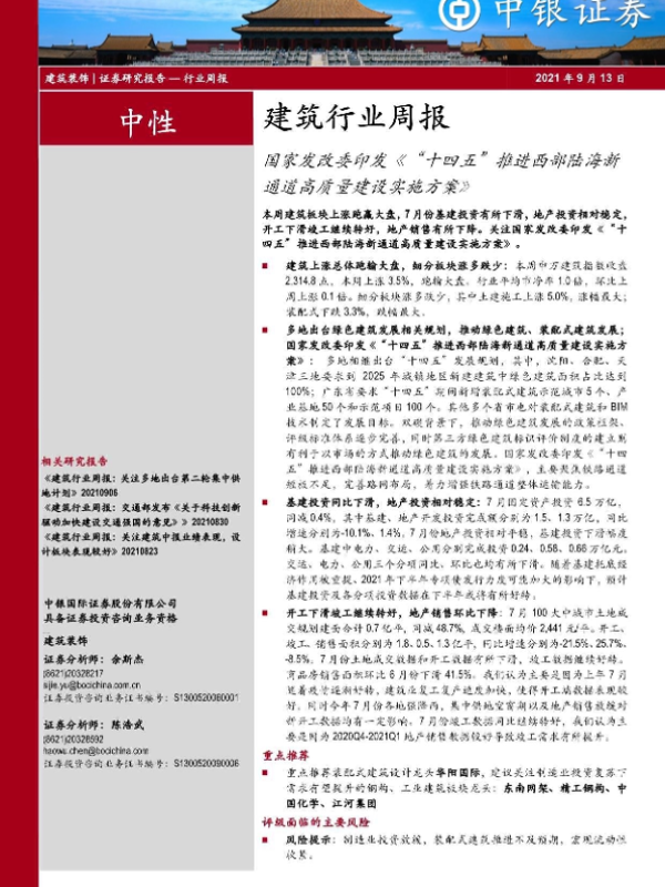 【中银证券】【20210913】国家发改委印发《'十四五'推进西部陆海新通道高质量建设实施方案》-17页