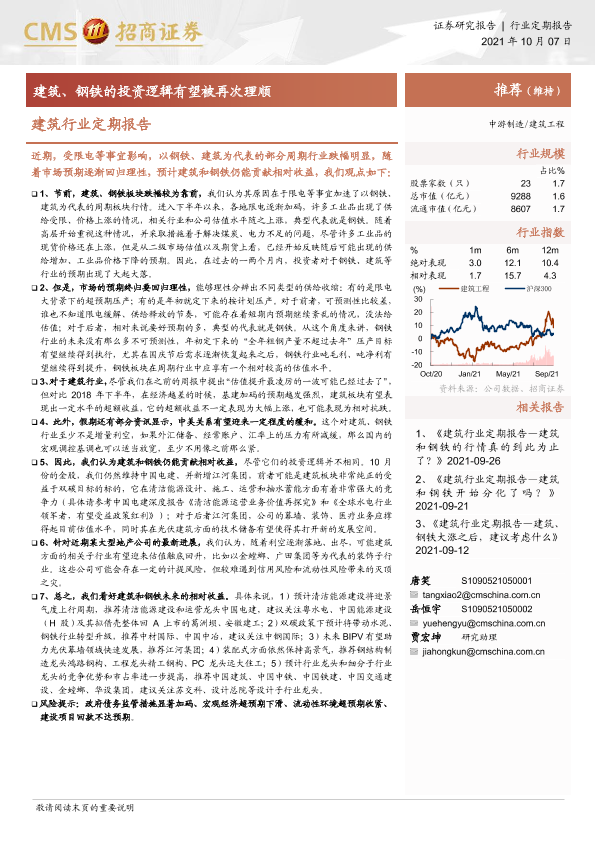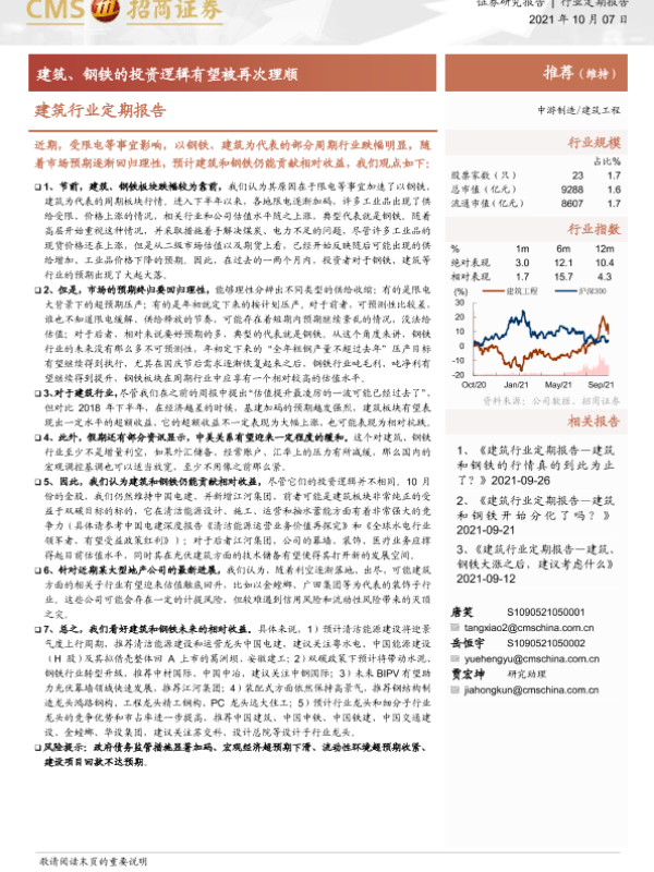 【海通证券】【20211007】建筑行业定期报告:建筑、钢铁的投资逻辑有望被再次理顺-3页