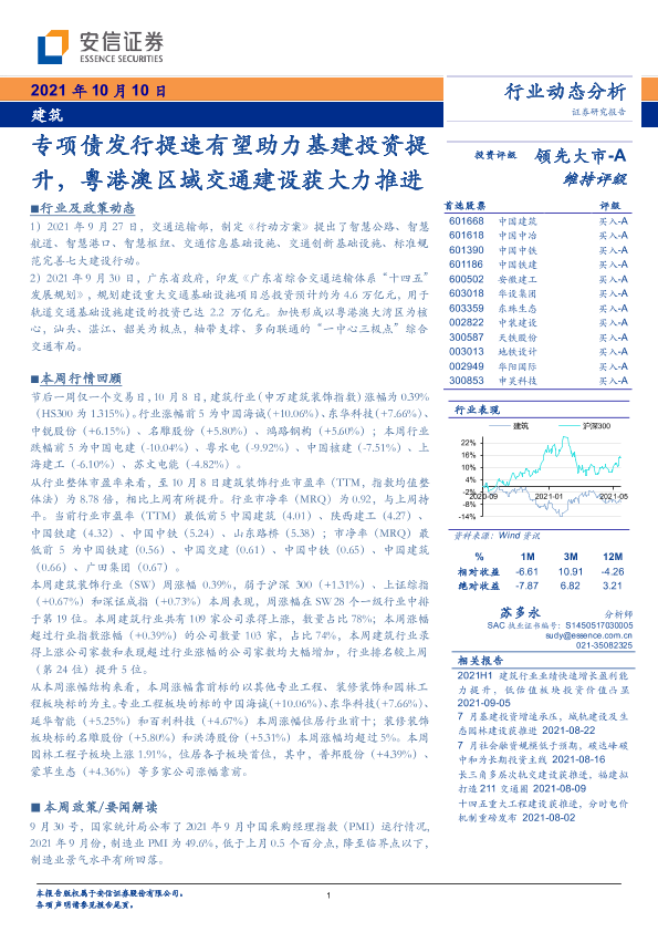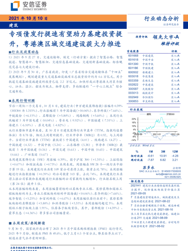 【安信证券】【20211010】建筑:专项债发行提速有望助力基建投资提升,粤港澳区域交通建设获大力推进-10页