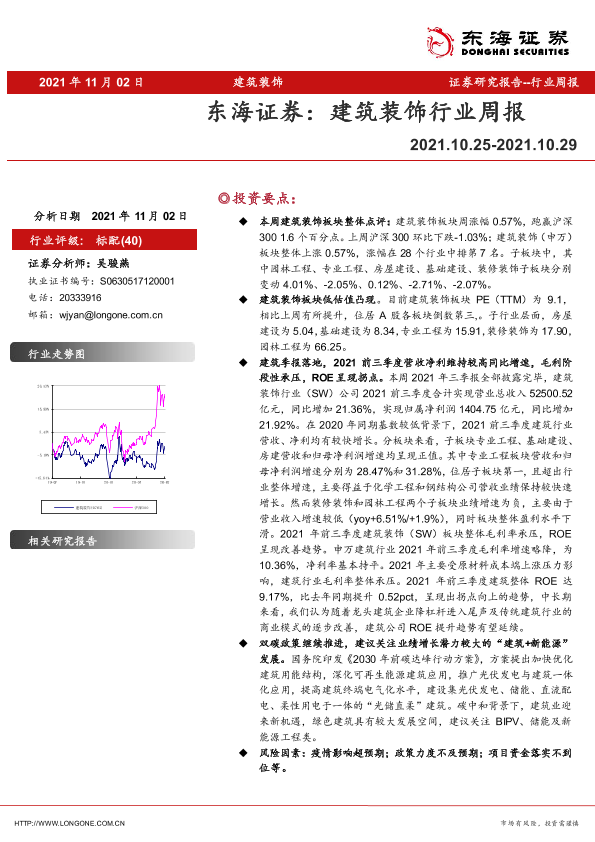 低碳环保 建筑装饰 行业周报 证券研究 财务分析