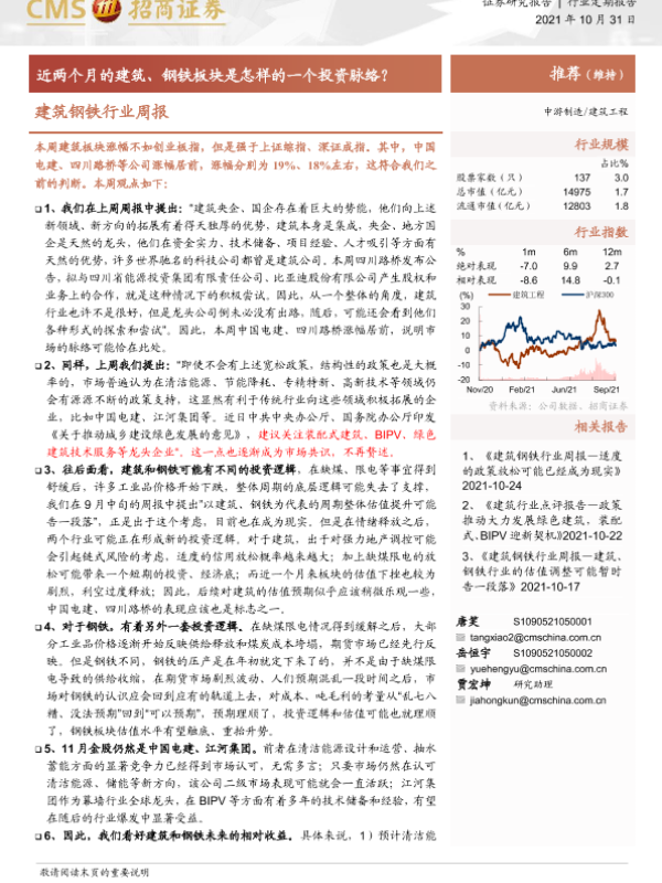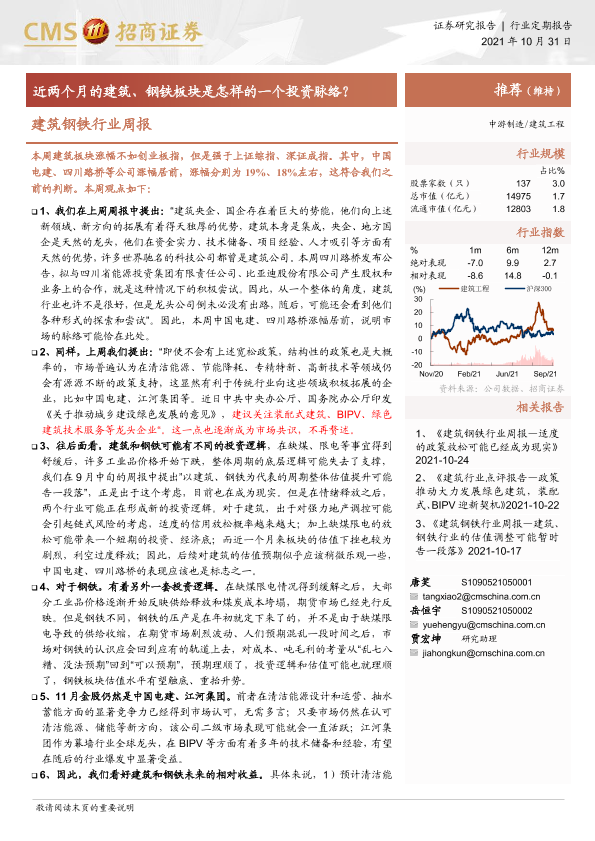 【海通证券】【20211031】建筑钢铁行业周报:近两个月的建筑、钢铁板块是怎样的一个投资脉络?-3页
