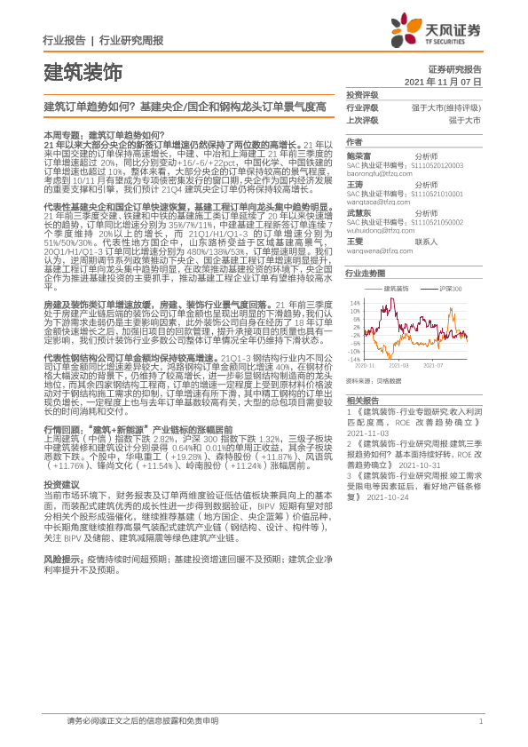 【天风证券】【20211107】建筑装饰行业研究周报:建筑订单趋势如何?-8页