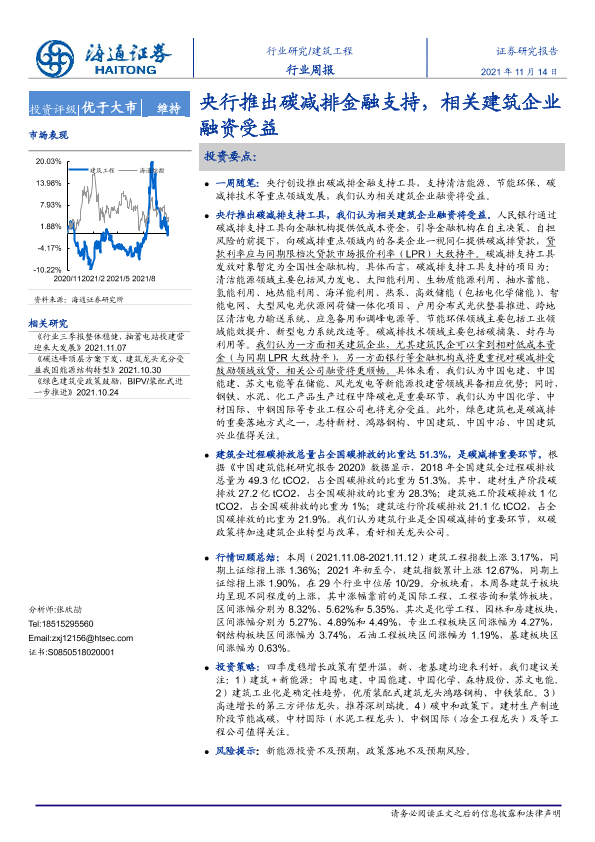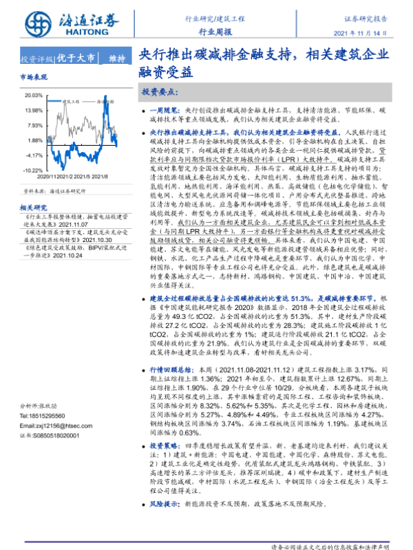 【海通证券】【20211114】建筑工程行业周报:央行推出碳减排金融支持,相关建筑企业融资受益-6页