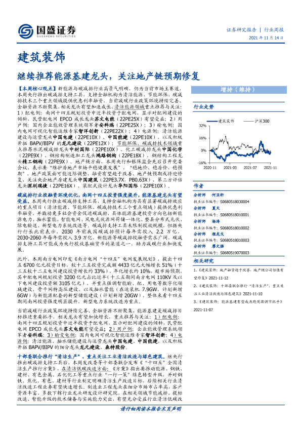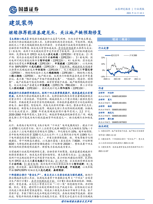 【国盛证券】【20211114】建筑装饰行业周报:继续推荐能源基建龙头,关注地产链预期修复-10页