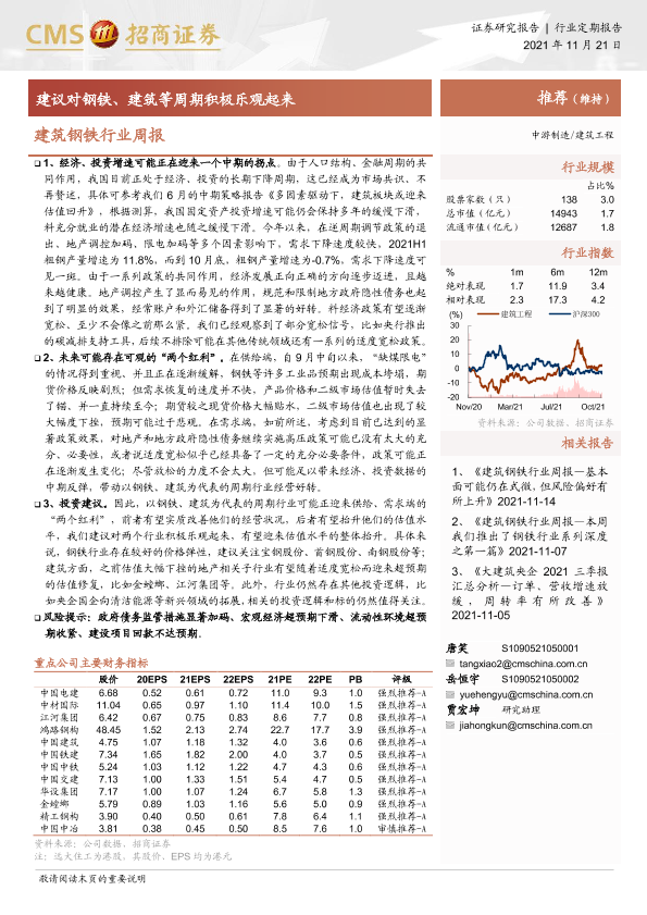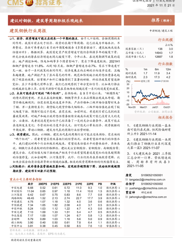 【海通证券】【20211121】建筑钢铁行业周报:建议对钢铁、建筑等周期积极乐观起来-5页