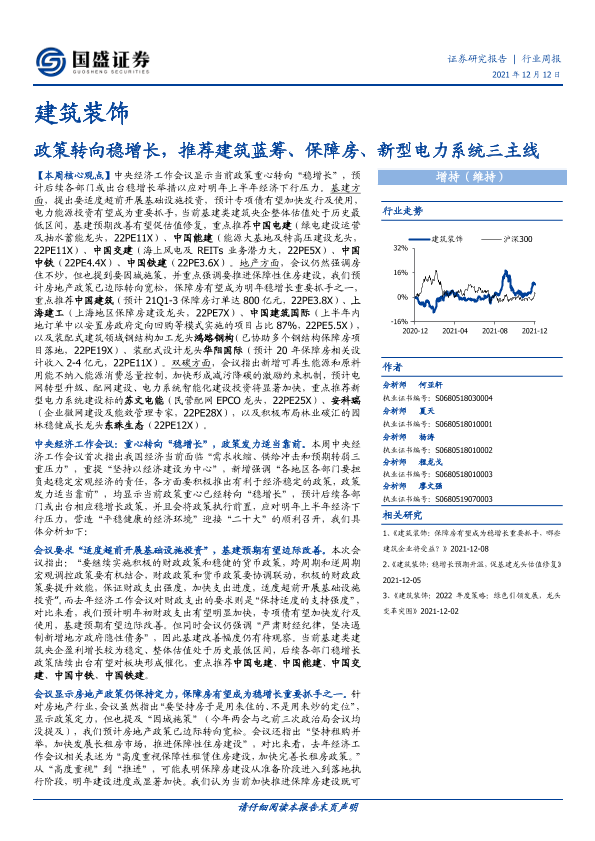 【国盛证券】【20211212】建筑装饰行业周报:政策转向稳增长,推荐建筑蓝筹、保障房、新型电力系统三主线-13页