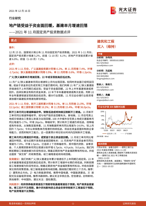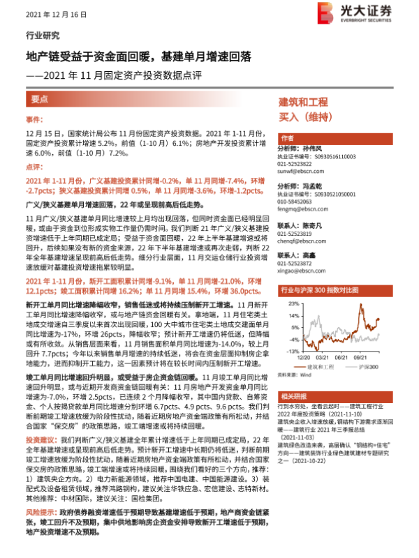 【光大证券】【20211216】2021年11月固定资产投资数据点评:地产链受益于资金面回暖,基建单月增速回落-7页