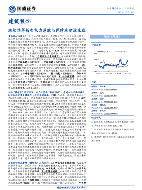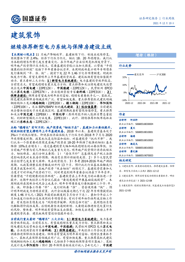 【国盛证券】【20211219】建筑装饰行业周报:继续推荐新型电力系统与保障房建设主线-15页