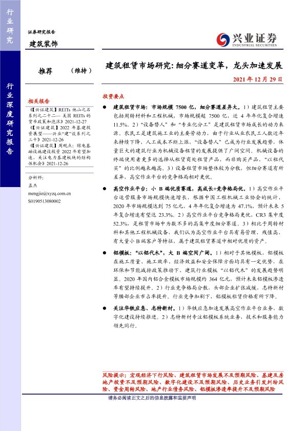 【兴业证券】【20211229】建筑租赁市场研究:细分赛道变革,龙头加速发展-24页