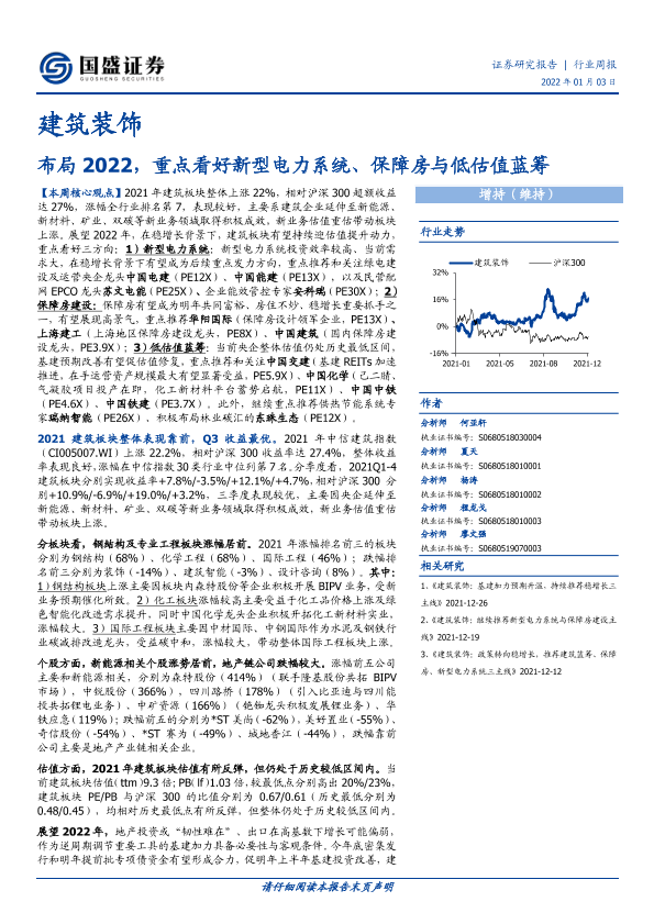 【国盛证券】【20220103】建筑装饰行业周报:布局2022,重点看好新型电力系统、保障房与低估值蓝筹-13页