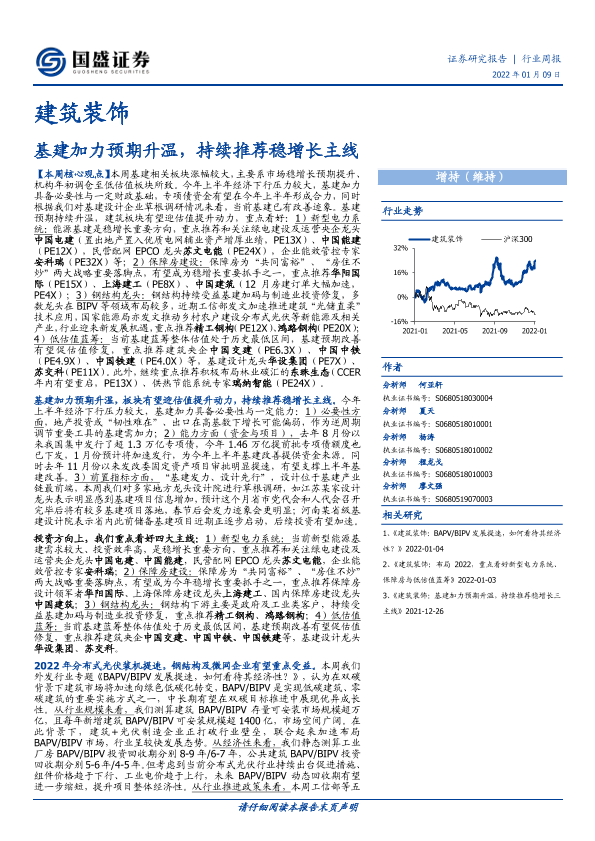 【国盛证券】【20220109】建筑装饰行业周报:基建加力预期升温,持续推荐稳增长主线-13页