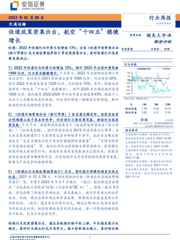 【安信证券】【20220109】交通运输行业周报:快递政策密集出台,航空“十四五”稳健增长-16页