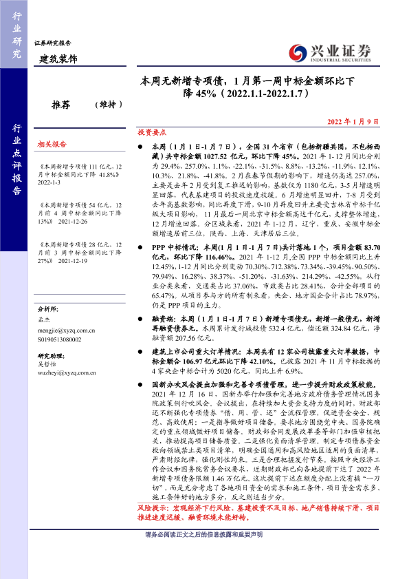 【兴业证券】【20220109】本周无新增专项债,1月第一周中标金额环比下降45%-23页