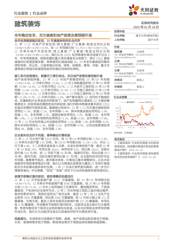【天风证券】【20220118】建筑装饰:全年稳定收官,关注基建和地产政策改善预期升温-4页