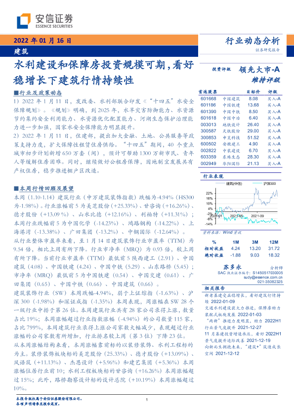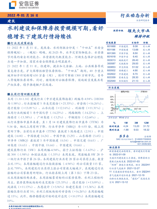【安信证券】【20220116】水利建设和保障房投资规模可期,看好稳增长下建筑行情持续性-13页