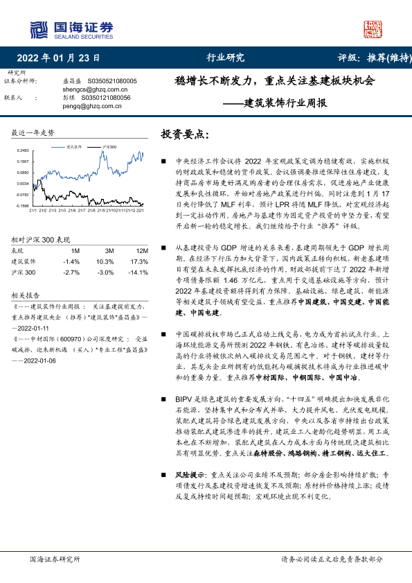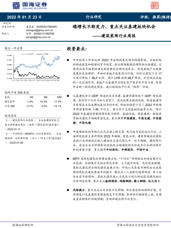 【国海证券】【20220123】建筑装饰行业周报:稳增长不断发力,重点关注基建板块机会-13页