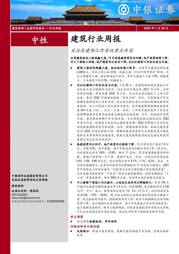 【中银证券】【20220124】建筑行业周报:关注住建部工作会议重点内容-18页