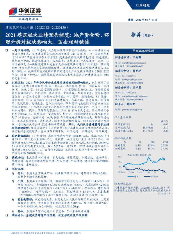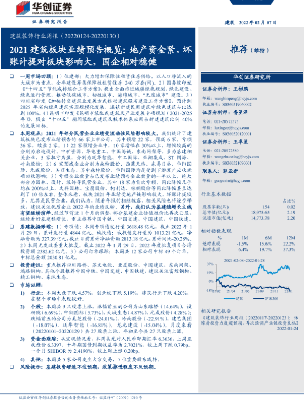 【华创证券】【20220207】建筑装饰行业周报:2021建筑板块业绩预告概览-25页