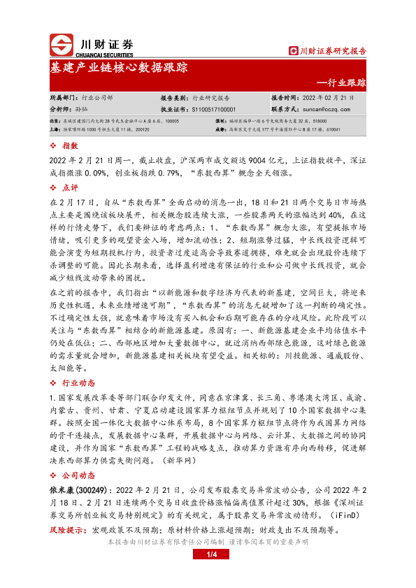 【川财证券】【20220221】基建产业链核心数据跟踪-4页