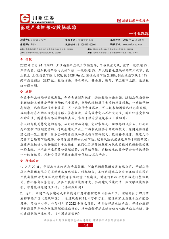 【川财证券】【20220224】基建产业链核心数据跟踪-4页