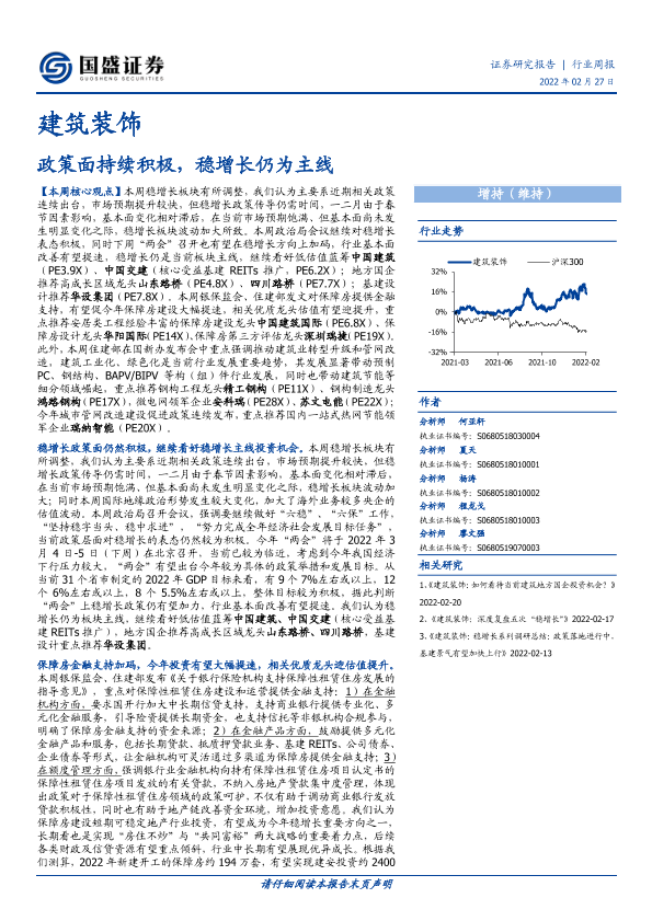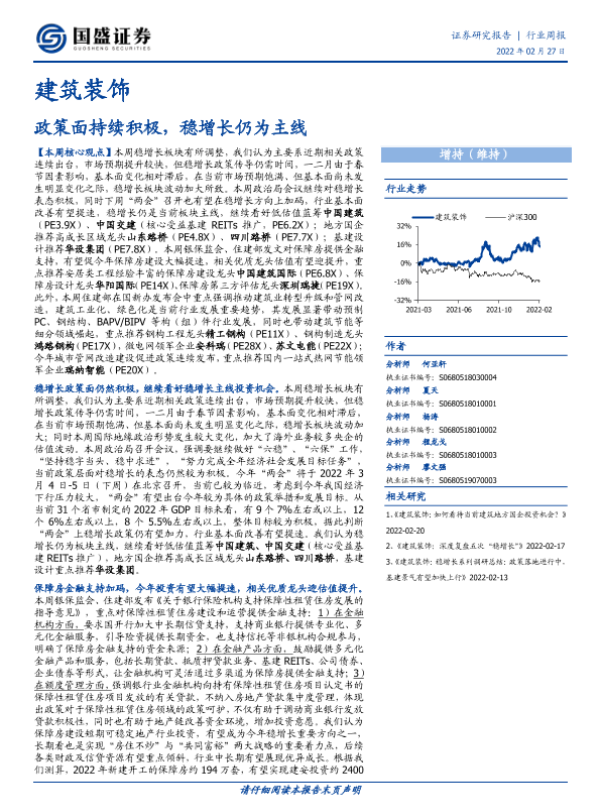 【国盛证券】【20220227】建筑装饰行业周报:政策面持续积极,稳增长仍为主线-10页