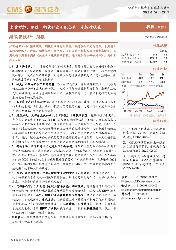 【海通证券】【20220227】建筑钢铁行业周报:变量增加,建筑、钢铁行业可能仍有一定相对收益-3页
