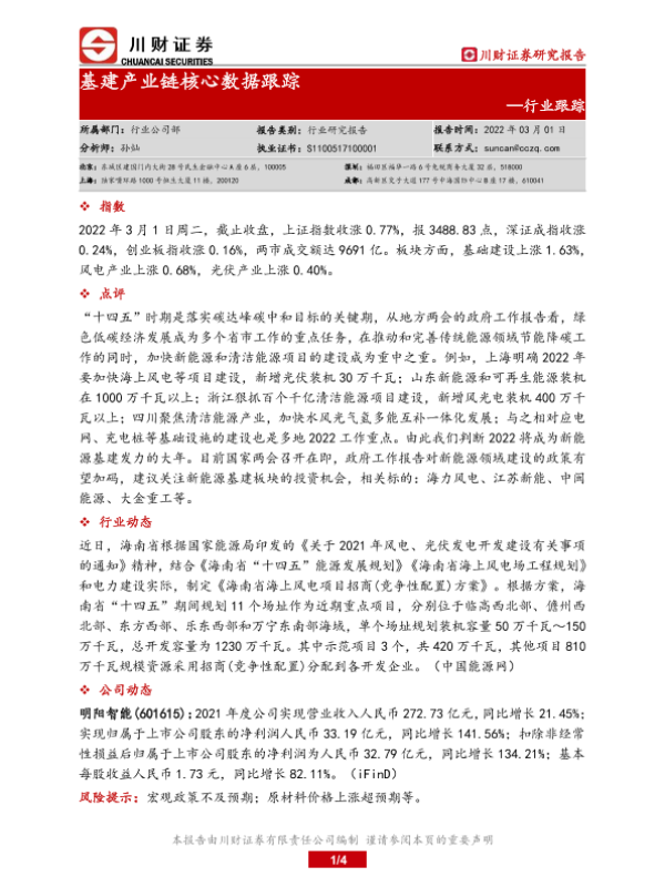 【川财证券】【20220301】基建产业链核心数据跟踪-4页