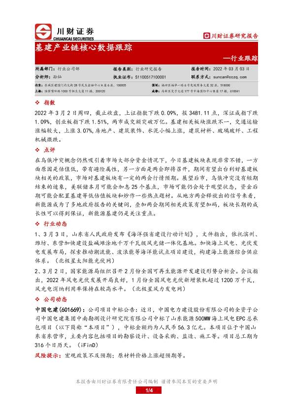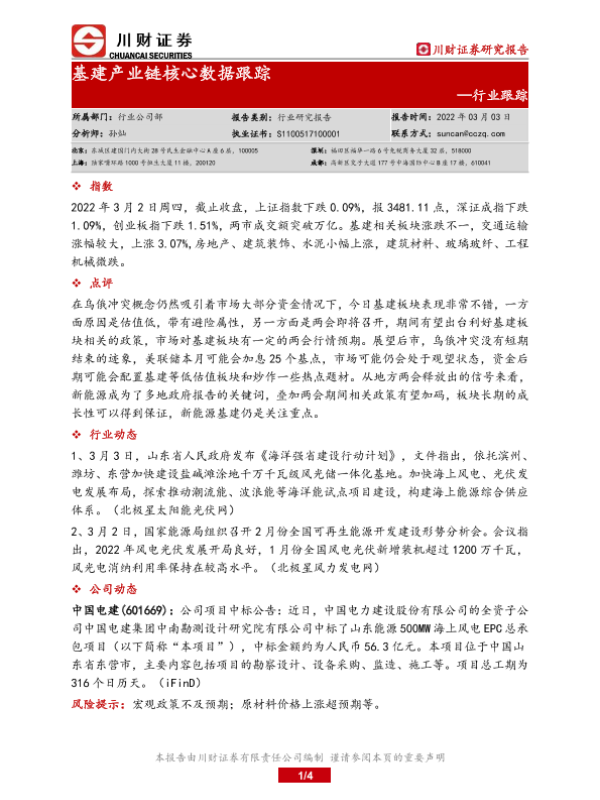 【川财证券】【20220303】基建产业链核心数据跟踪-4页