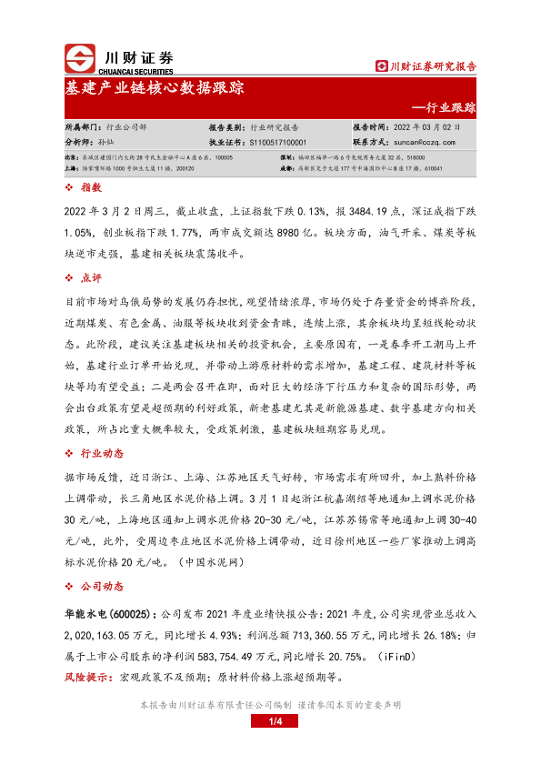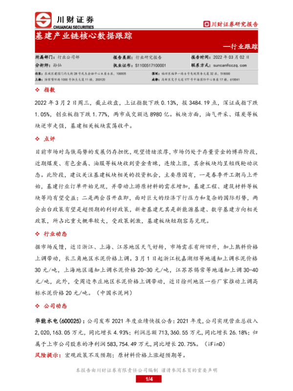 【川财证券】【20220302】基建产业链核心数据跟踪-4页