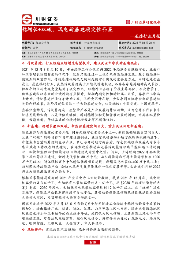 【川财证券】【20220228】稳增长+双碳,风电新基建确定性凸显-10页