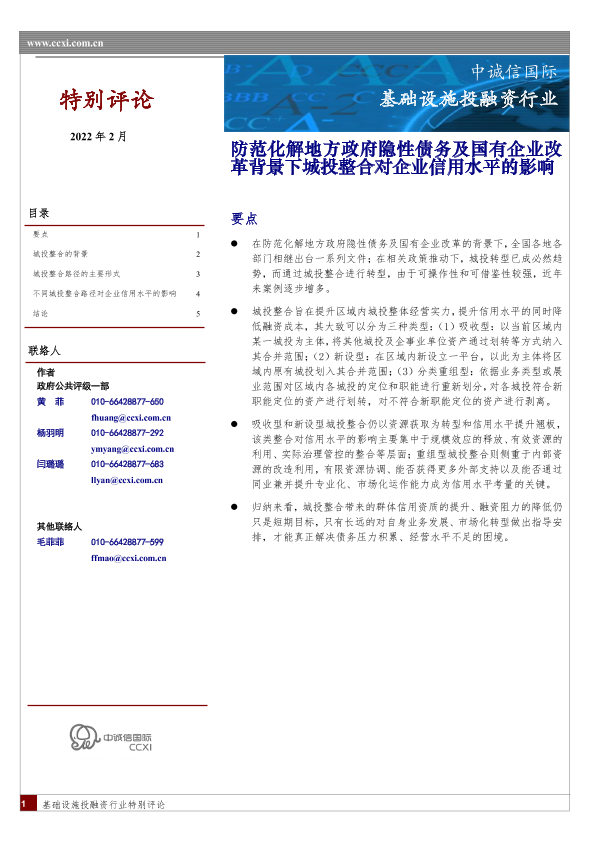 【中诚信国际】【20220228】防范化解地方政府隐性债务及国有企业改革背景下城投整合对企业信用水平的影响-6页