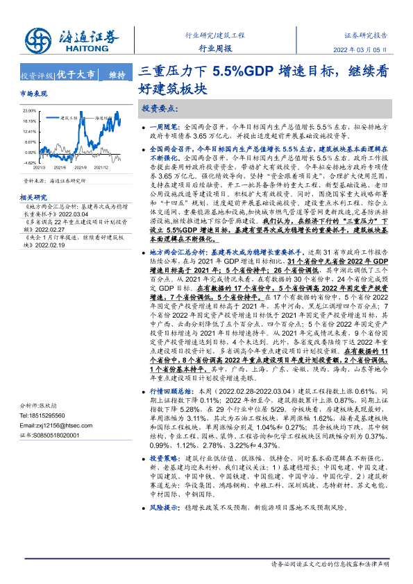 【海通证券】【20220305】建筑工程行业周报:三重压力下5.5%GDP增速目标,继续看好建筑板块-6页