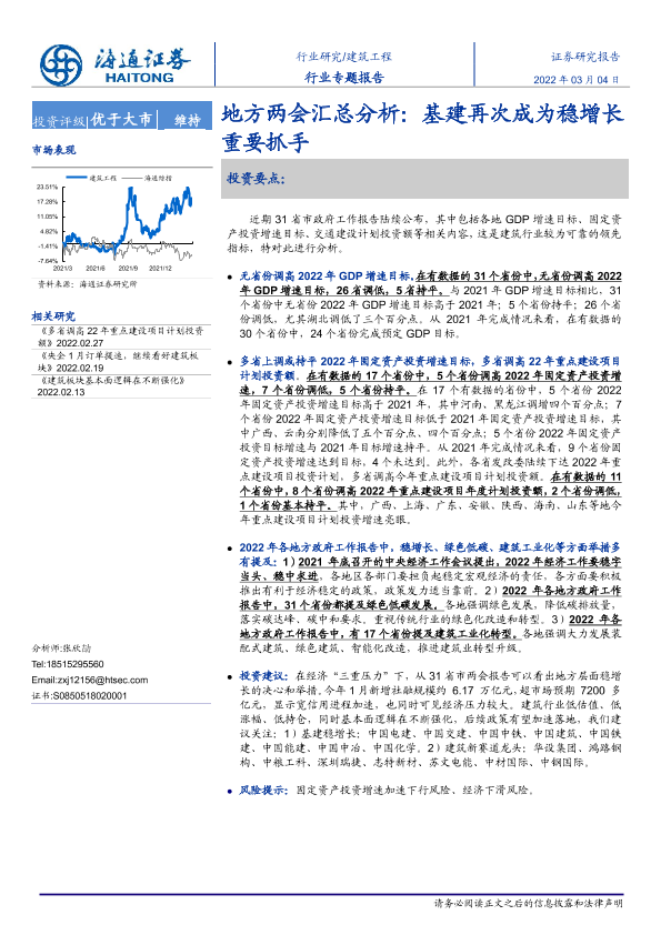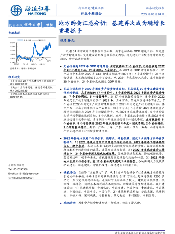 【海通证券】【20220304】建筑工程行业专题报告:地方两会汇总分析:基建再次成为稳增长重要抓手-17页
