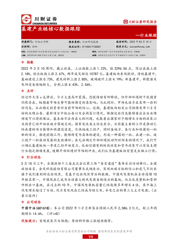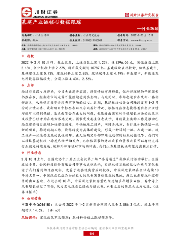 【川财证券】【20220310】基建产业链核心数据跟踪-4页