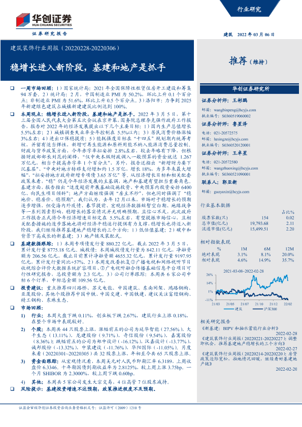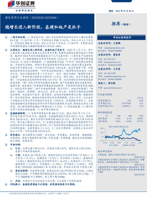 【华创证券】【20220306】建筑装饰行业周报:稳增长进入新阶段,基建和地产是抓手-18页