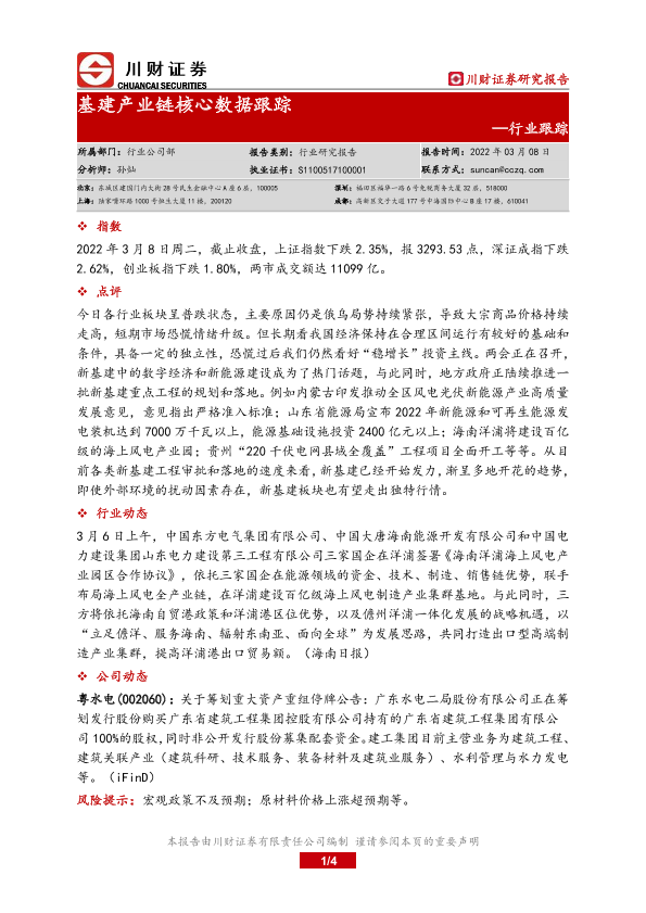 【川财证券】【20220308】基建产业链核心数据跟踪-4页