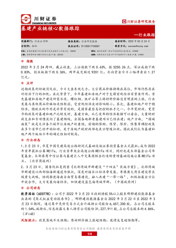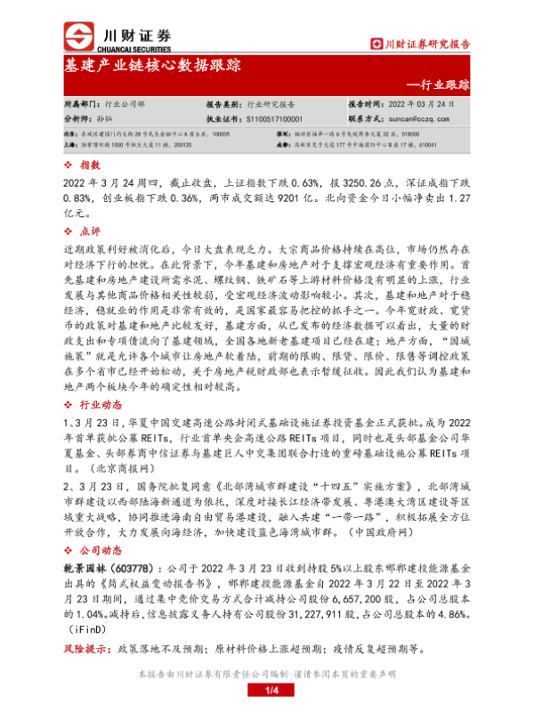 【川财证券】【20220324】基建产业链核心数据跟踪-4页