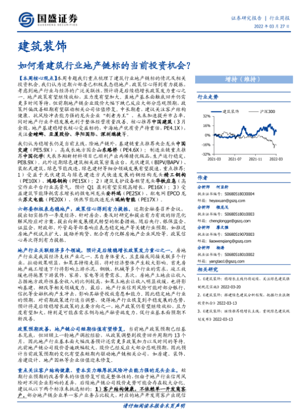 【国盛证券】【20220327】建筑装饰行业周报:如何看建筑行业地产链标的当前投资机会?-11页