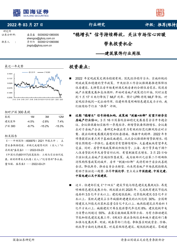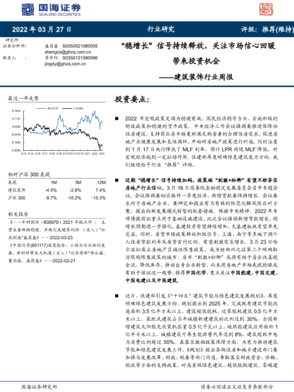 【国海证券】【20220327】建筑装饰行业周报:“稳增长”信号持续释放,关注市场信心回暖带来投资机会-13页