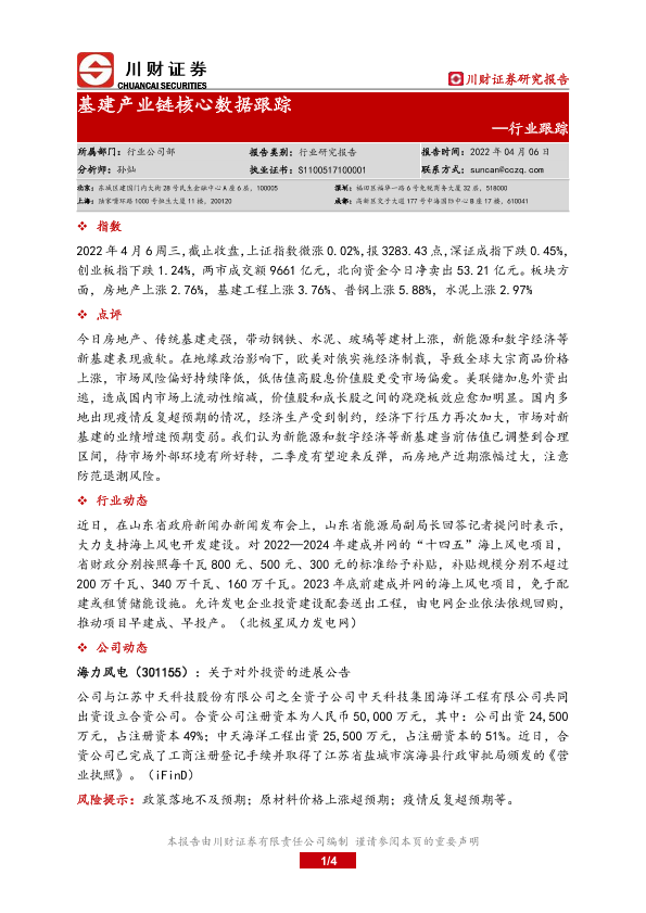 【川财证券】【20220406】基建产业链核心数据跟踪-4页
