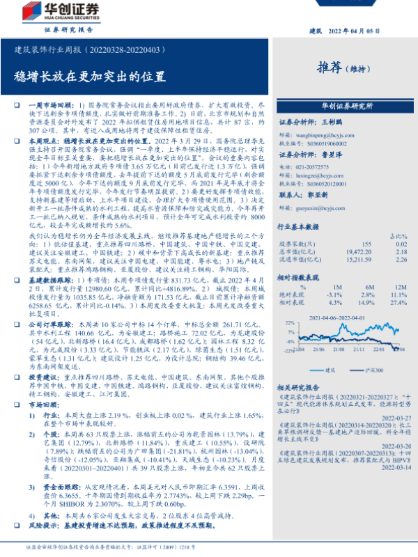 【华创证券】【20220405】建筑装饰行业周报:稳增长放在更加突出的位置-19页