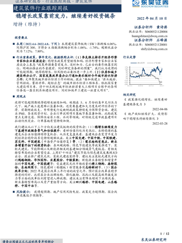 【东吴证券】【20220410】建筑装饰行业跟踪周报:稳增长政策靠前发力,继续看好投资链条-12页