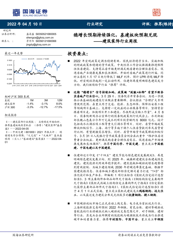 【国海证券】【20220410】建筑装饰行业周报:稳增长预期持续强化,基建板块预期兑现-14页
