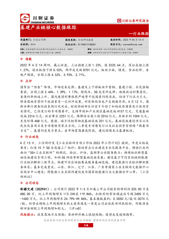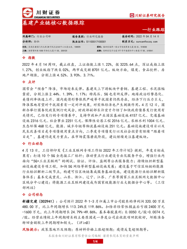【川财证券】【20220414】基建产业链核心数据跟踪-4页