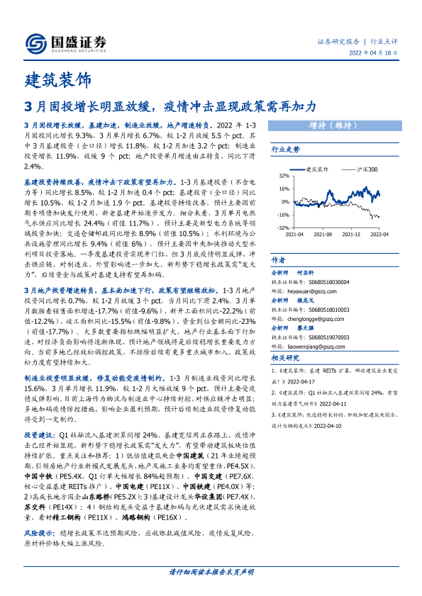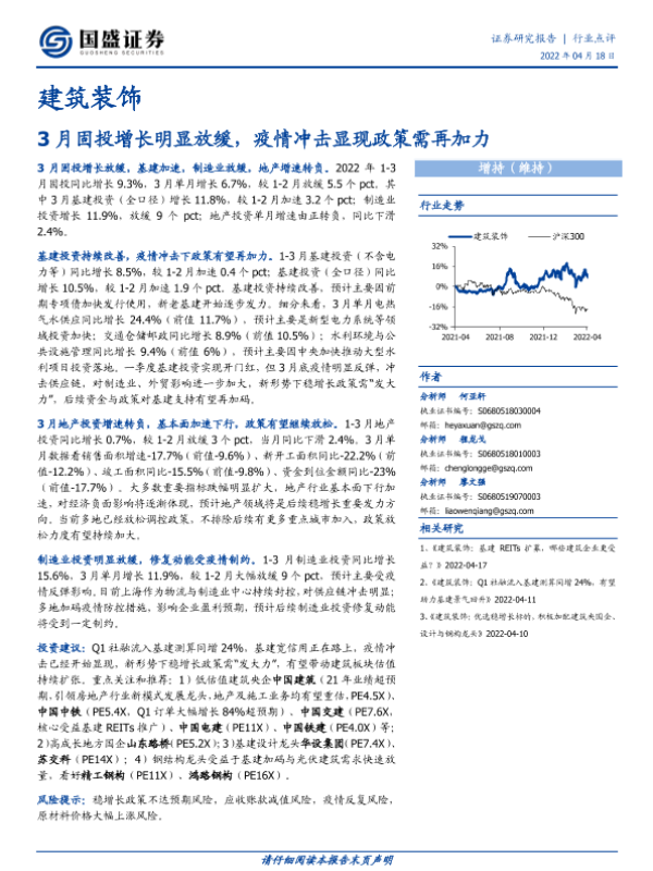 【国盛证券】【20220418】3月固投增长明显放缓,疫情冲击显现政策需再加力-3页