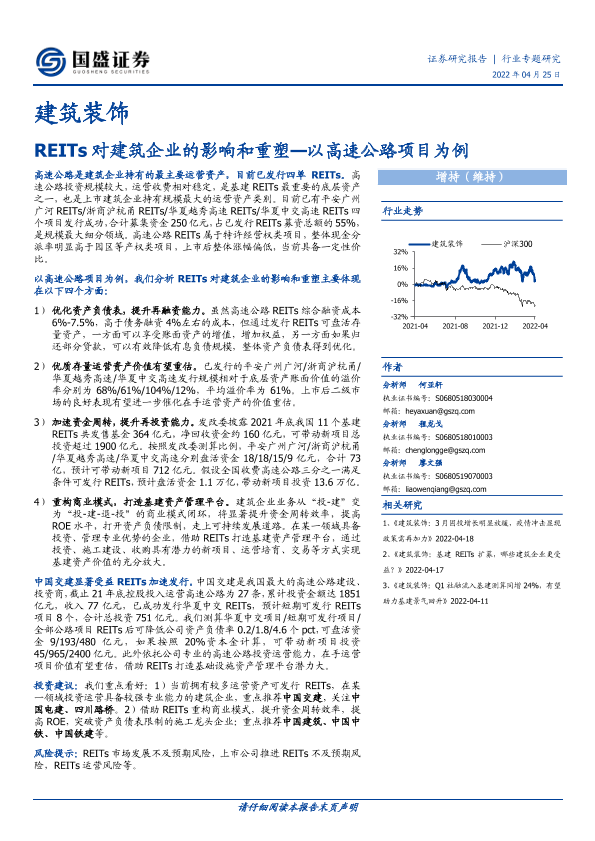 【国盛证券】【20220425】建筑装饰行业专题研究:REITs对建筑企业的影响和重塑—以高速公路项目为例-29页