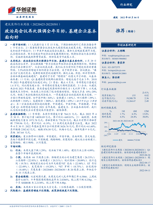 【华创证券】【20220504】建筑装饰行业周报:政治局会议再次强调全年目标,基建企业基本面向好-33页