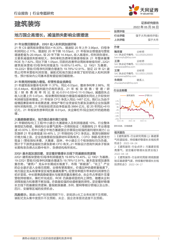 【天风证券】【20220506】建筑装饰行业专题研究:地方国企高增长,减值损失影响业绩增速-22页