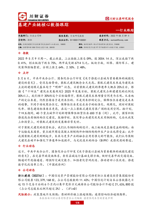 【川财证券】【20220509】基建产业链核心数据跟踪-4页